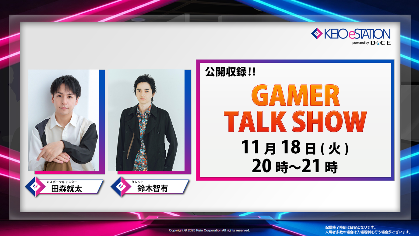 KEIO eSTATION Shinjuku GAMER TALK SHOW【田森就太&鈴木智有】:2025年11月18日(火)